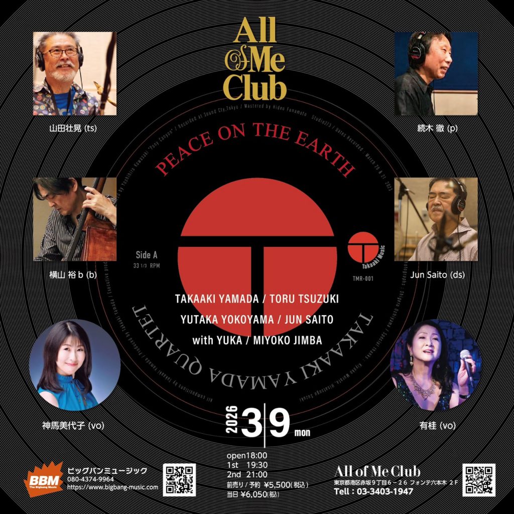 [2026.3.9] [PEACE ON THE EARTH] 山田壮晃カルテット with 有桂 at All of Me Club