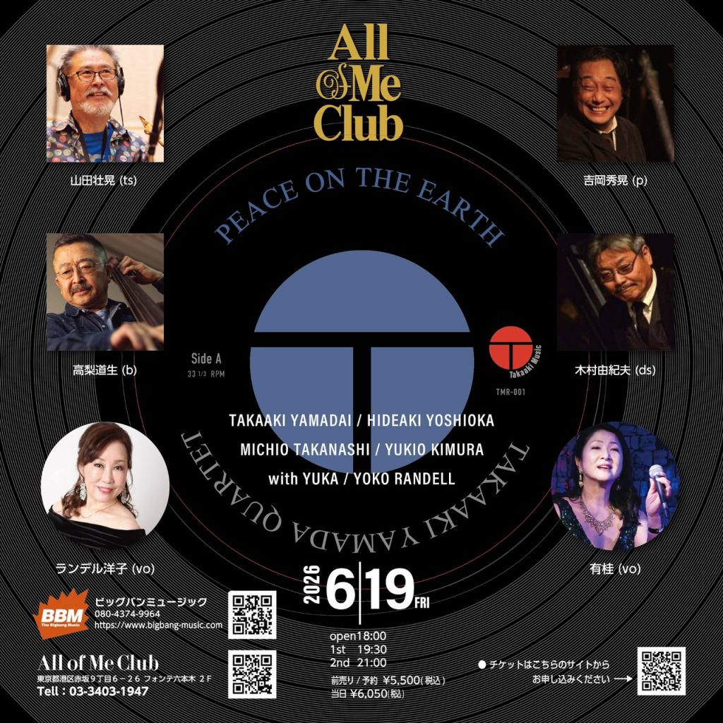 [2026.6.19] [PEACE ON THE EARTH] 山田壮晃カルテット with 有桂 at All of Me Club